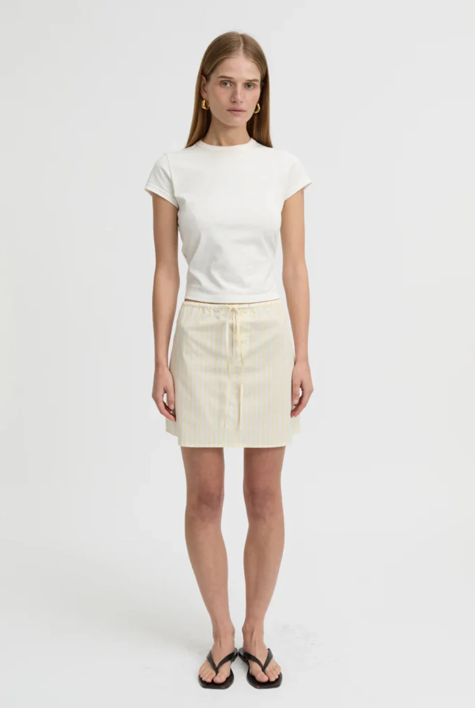 Light and refined, the Calypso Skirt in Yellow Stripe brings an understated warmth to your rotation. Crafted from airy cotton poplin, it’s defined by its relaxed fit and adjustable drawstring waist. The subtle stripes adds a soft lift to neutral pairings, making it a natural choice for both sunlit days and laid-back evenings. Style with the matching Calypso Shirt or a crisp white tee.