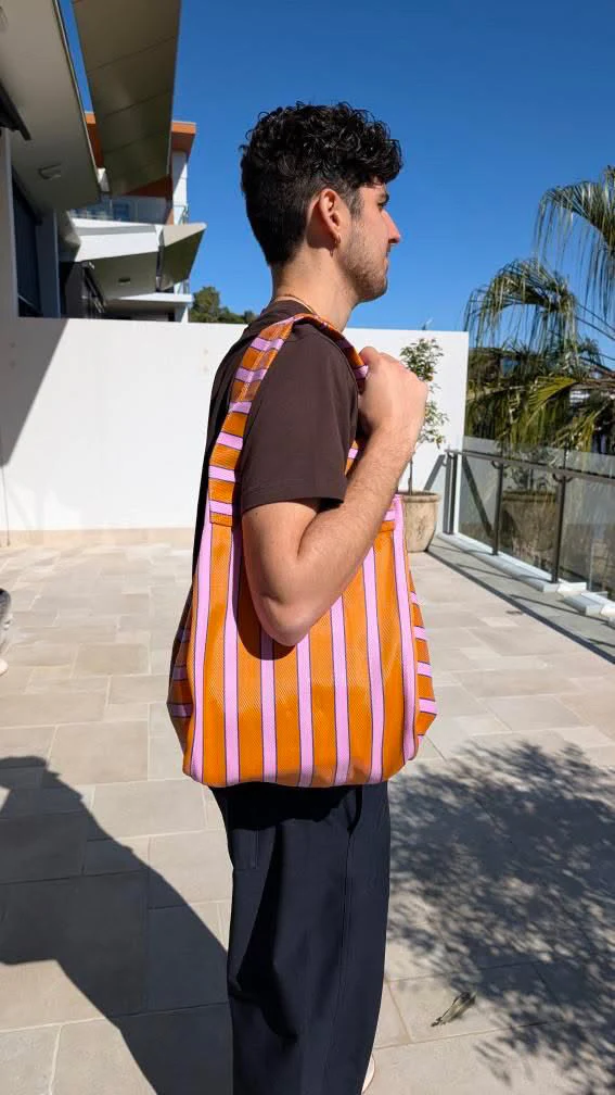 Recycled nylon may show colour variations, small pulls, irregular stitching, or tiny holes — these do not affect function